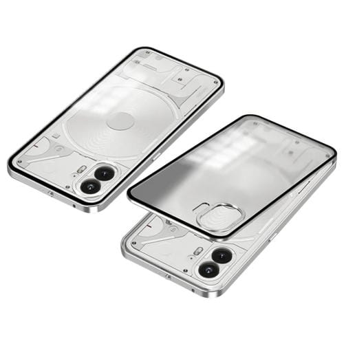 Estuche para Nothing Phone 2 con Marco de Metal y Hebilla a Presión (Plateado)