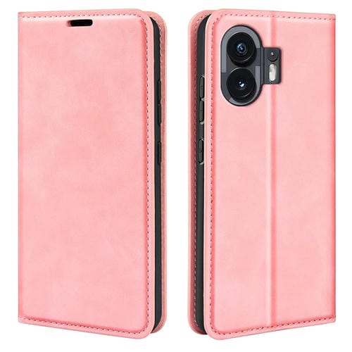 Estuche para Nothing Phone 2 de Cuero con Succión Magnética y Piel Retro (Rosa)