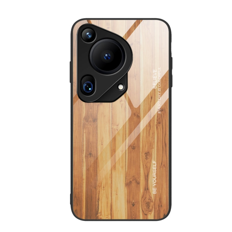Caja de Teléfono para Huawei Pura 70 Ultra de Vidrio y Grano de Madera (Amarillo)