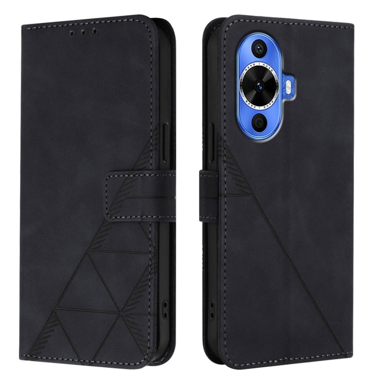 Funda para Huawei Nova 12S 4G Global Crossbody de Cuero con Tapa En Relieve 3D (Negro)