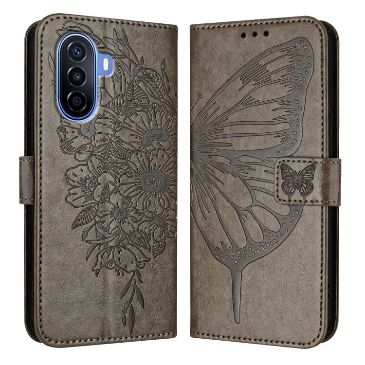 Funda de Cuero para Huawei Enjoy 50 4G y Nova Y70 Plus con Mariposa en Relieve (Gris)