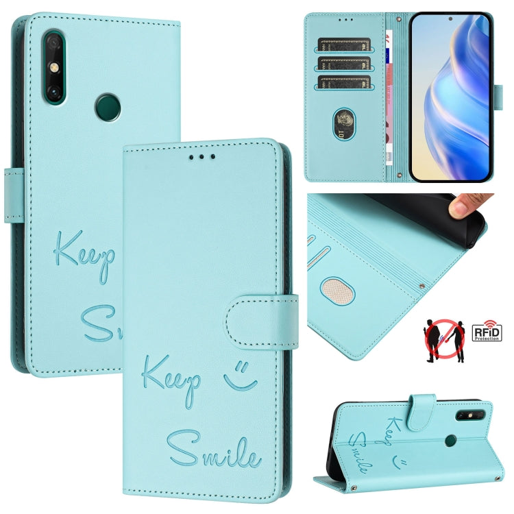 Funda de Cuero Rfid con Relieve Sonriente para Huawei Enjoy 50 Pro 4G (Verde Menta)