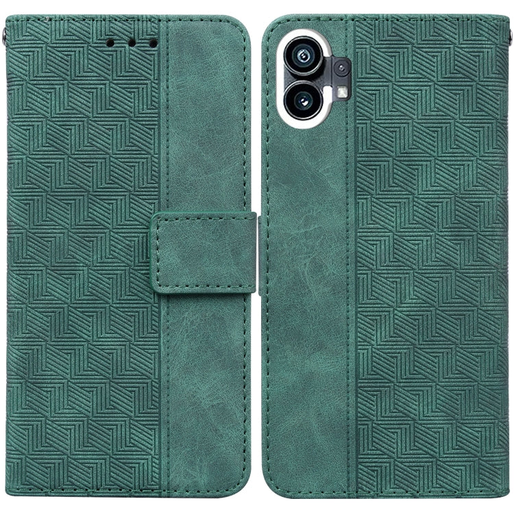 Estuche de Cuero For Nothing Phone 1 con Tapa en Relieve Geométrico (Verde)