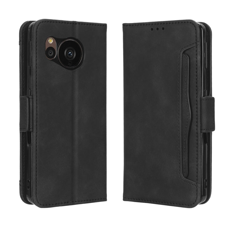 For Sharp Aquos Sense7 Plus Skin Feel Calf Texture Card Slots Leather Phone Case(Black)