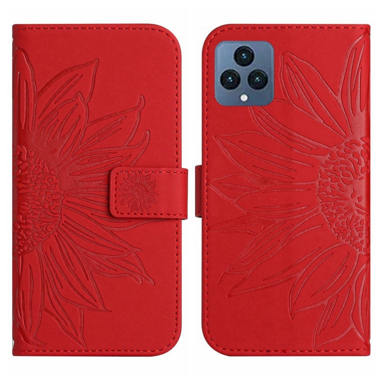 Funda de Cuero T-Mobile Revvl 6 Pro 5G Flip con Cordón y Diseño Sun Flower (Rojo)