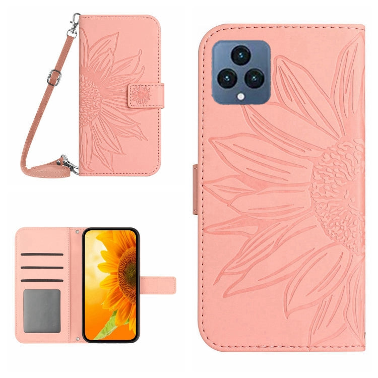 Funda Flip de Cuero T-Mobile Revvl 6 Pro 5G con Cordón y Patrón Sun Flower (Rosa)