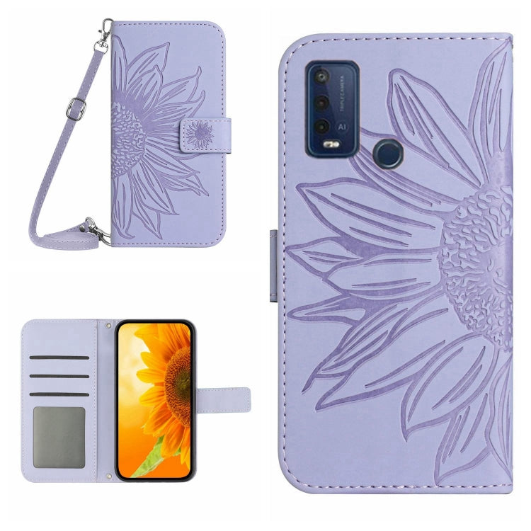 Funda Flip de Cuero T-Mobile Revvl V+ 5G con Cordón y Diseño Sun Flower (Púrpura)