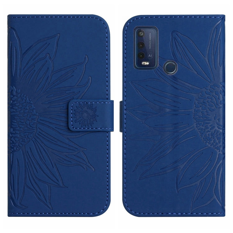 Funda de Cuero Flip para Wiko T10 Skin Feel con Cordón (Azul Oscuro) y Diseño Sun Flower