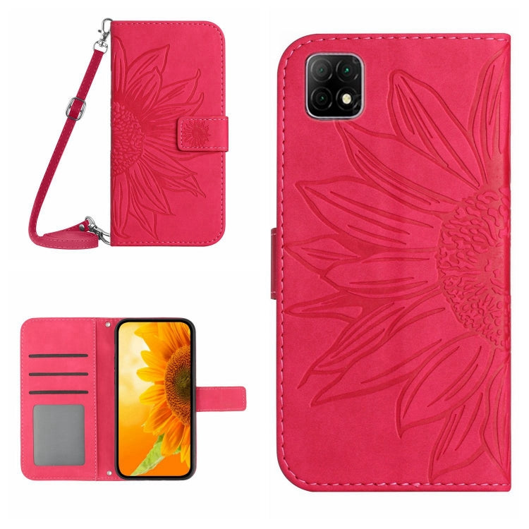 Funda Flip de Cuero T-Mobile Revvl 6 5G con Cordón y Diseño Sun Flower (Rose Red)