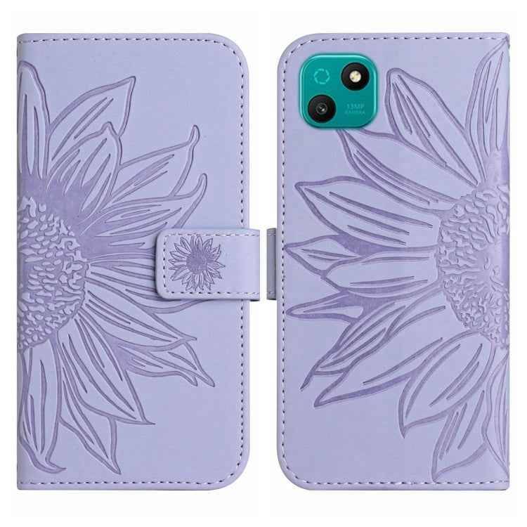 Funda Flip de Cuero Wiko Power U30 Skin Feel con Cordón y Diseño Sun Flower (Púrpura)
