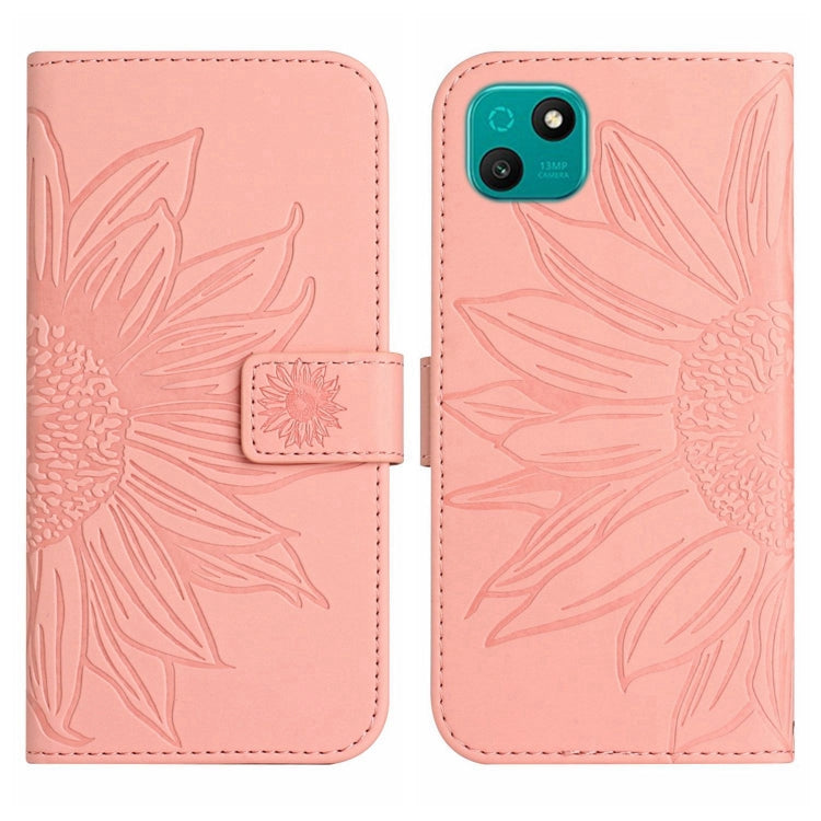 Funda de Cuero Flip para Wiko T50 Skin Feel Sun Flower Pattern con Cordón (Rosa)