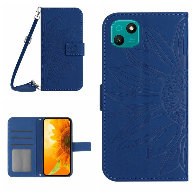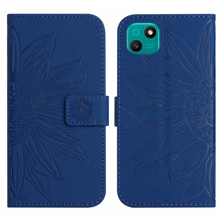Funda Flip de Cuero para Wiko T3 Skin Feel con Cordón y Diseño Sun Flower (Azul Tinta)