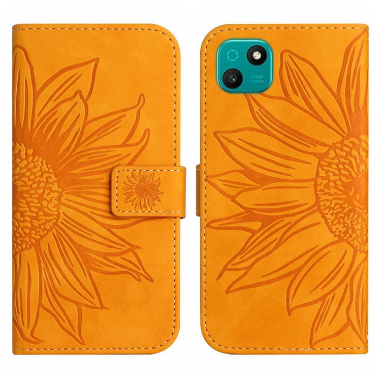 Funda Flip de Cuero para Wiko T50 Skin Feel con Cordón y Diseño Sun Flower (Amarillo)