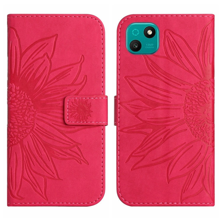 Funda Flip de Cuero Wiko T3 Skin Feel con Cordón y Patrón Sun Flower (Rose Red)