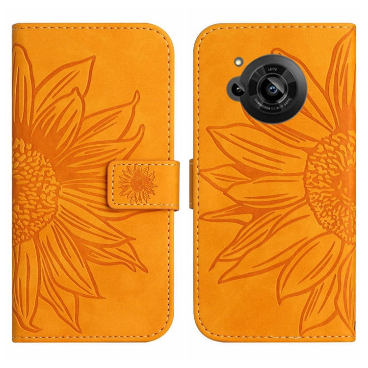 Funda Flip de Cuero para Sharp Aquos R7 / P7 con Cordón y Diseño Sun Flower (Amarillo)