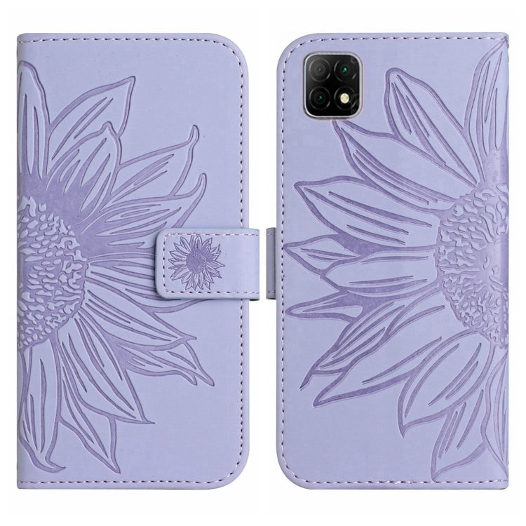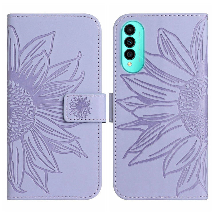 Funda Flip de Cuero para Wiko T50 Skin Feel con Cordón y Diseño Sun Flower (Púrpura)