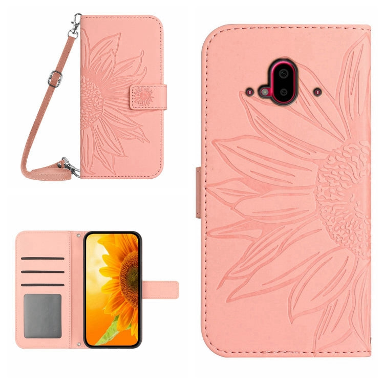 Funda Flip de Cuero para Fujitsu Arrows F-52B con Cordón y Diseño Sun Flower (Rosa)