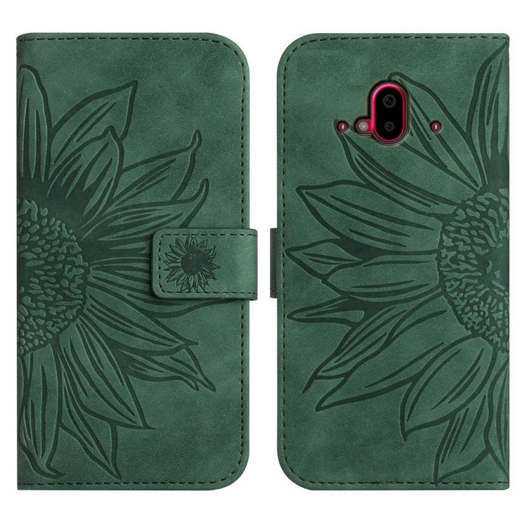 Funda Flip de Cuero para Sharp Aquos Wish con Cordón y Patrón Sun Flower (Verde)