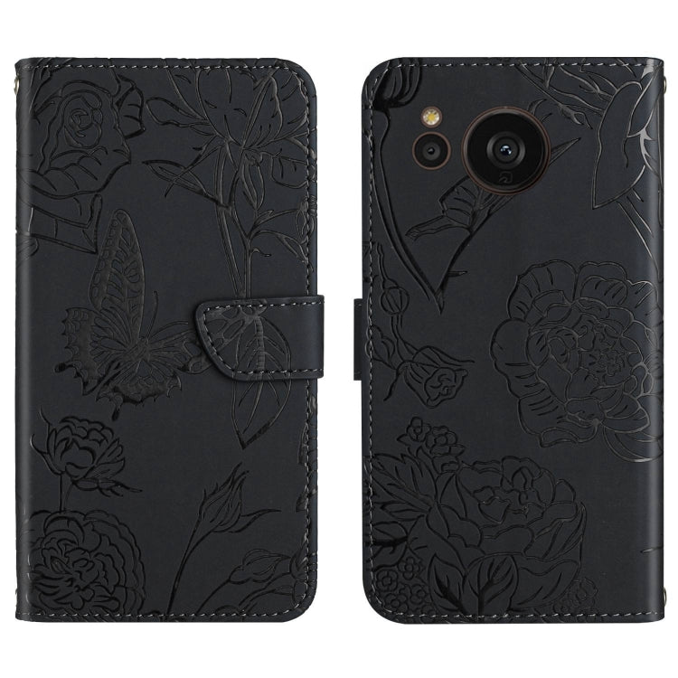 Funda de Cuero para Sharp Aquos Sense7 Sh-V48 Ht03 con Tapa en Relieve (Negro)
