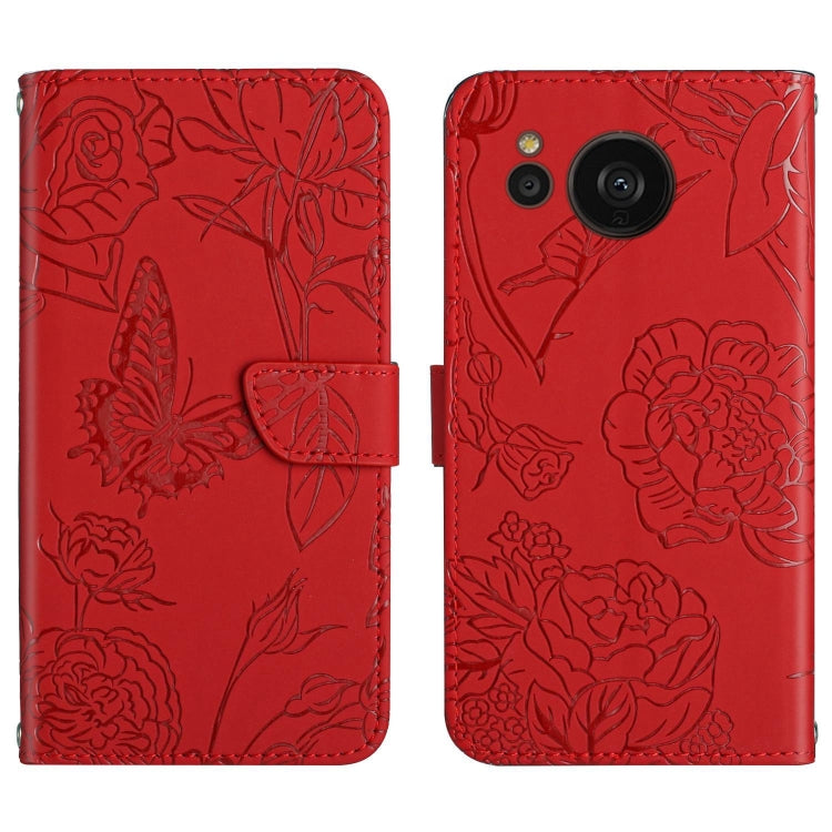 Funda de cuero con tapa para Sharp Aquos Sense7 Sh-V48 Ht03 Skin Feel Butterfly (Rojo)