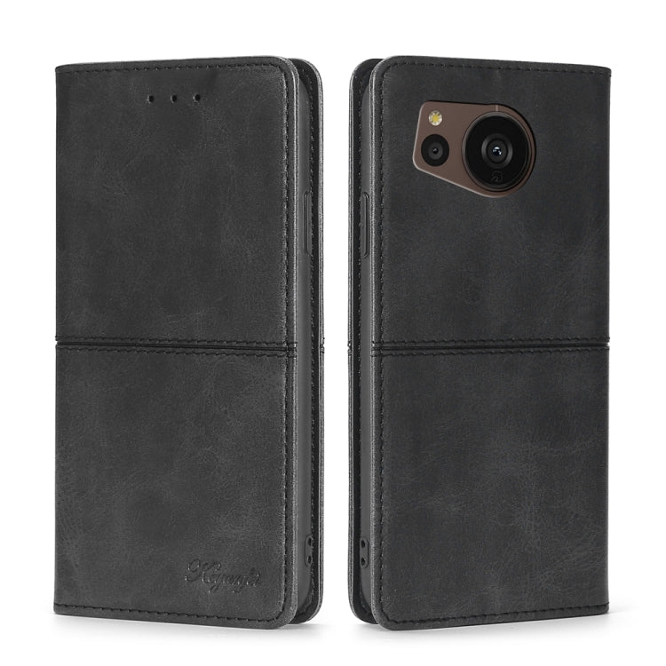 Funda para Sharp Aquos Sense7 Plus de Cuero Magnético con Textura de Vaca (Negro)