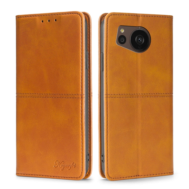 Funda para Sharp Aquos Sense7 Plus Cuero Magnético Textura de Vaca (Marrón Claro)