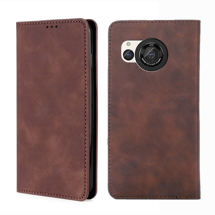 Funda magnética de cuero para Sharp Aquos R8 Pro Sh-51 Skin Feel (Marrón Oscuro)