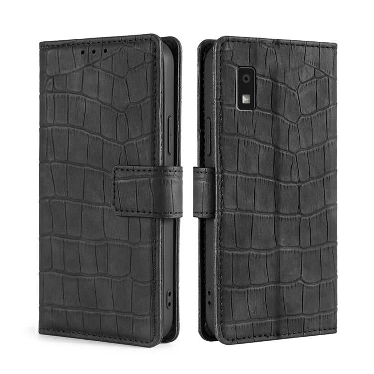 Funda de Cuero para Sharp Aquos Wish 3 Skin Feel Cocodrilo con Cierre Magnético (Negro)