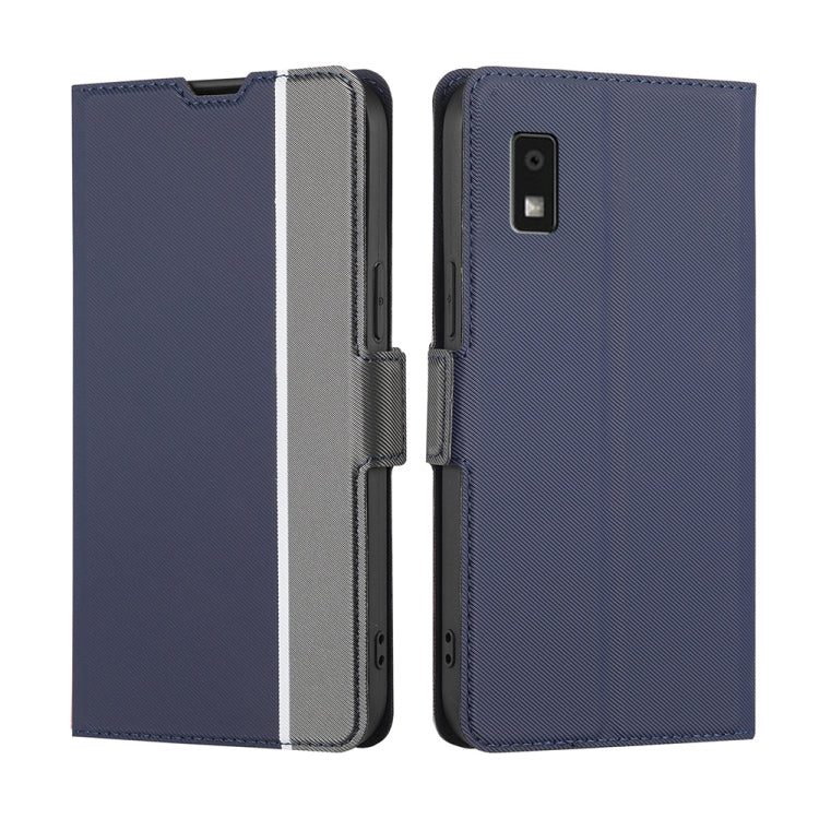 Funda de Cuero para Sharp Aquos Wish 3 con Botón Lateral y Textura Twill (Azul)