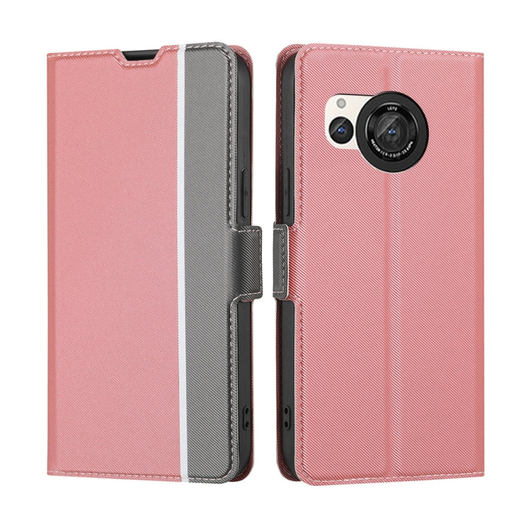 Funda de Cuero para Sharp Aquos Wish 3 con Textura Twill y Botones Laterales (Rosa)