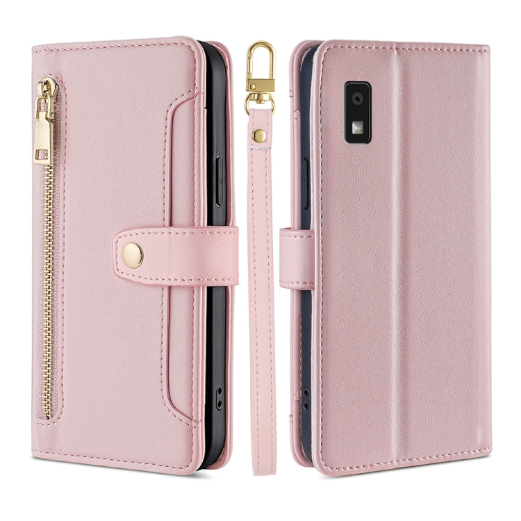 Funda de Cuero Crossbody para Sharp Aquos Wish 3 Lite con Textura Sheep y Zipper (Rosa)
