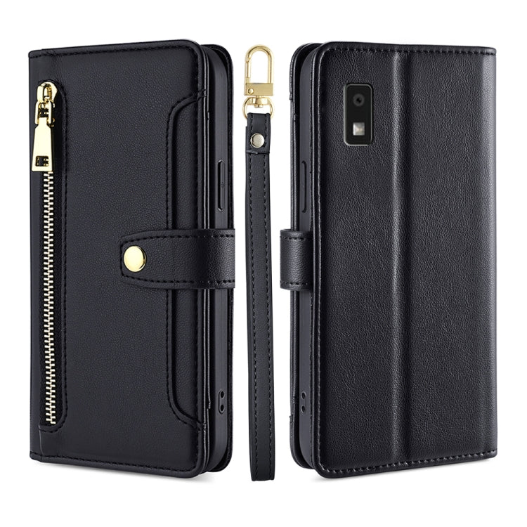Funda de Cuero Crossbody con Zipper para Sharp Aquos Wish 3 Lite (Negro)