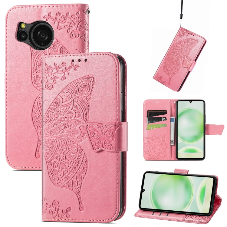 Funda para Sharp Aquos Sense8 de Cuero con Relieve de Flor y Mariposa (Rosa)