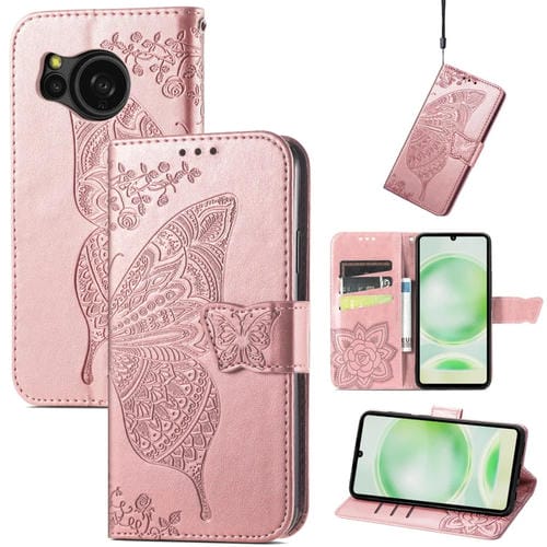 Funda para Sharp Aquos Sense8 de Cuero con Relieve Flor y Mariposa (Oro Rosa)