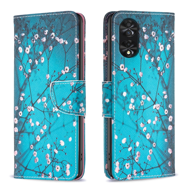 Funda de Cuero para Infinix Hot 40I con Patrón de Dibujo Coloreado (Flor de Ciruelo)