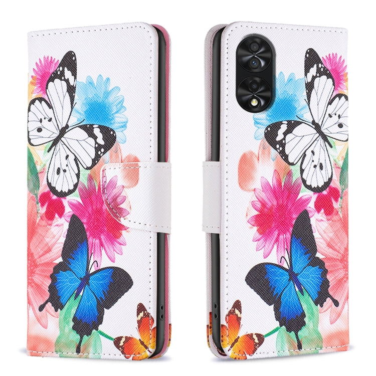 Funda de Cuero para Infinix Hot 40I con Patrón de Dibujo Coloreado (Mariposas)