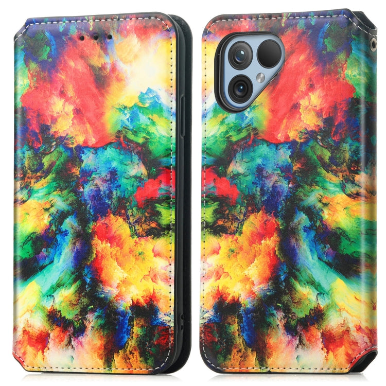 Estuche de Cuero Magnético Caseneo para Fairphone 5 (Nubes de Colores)