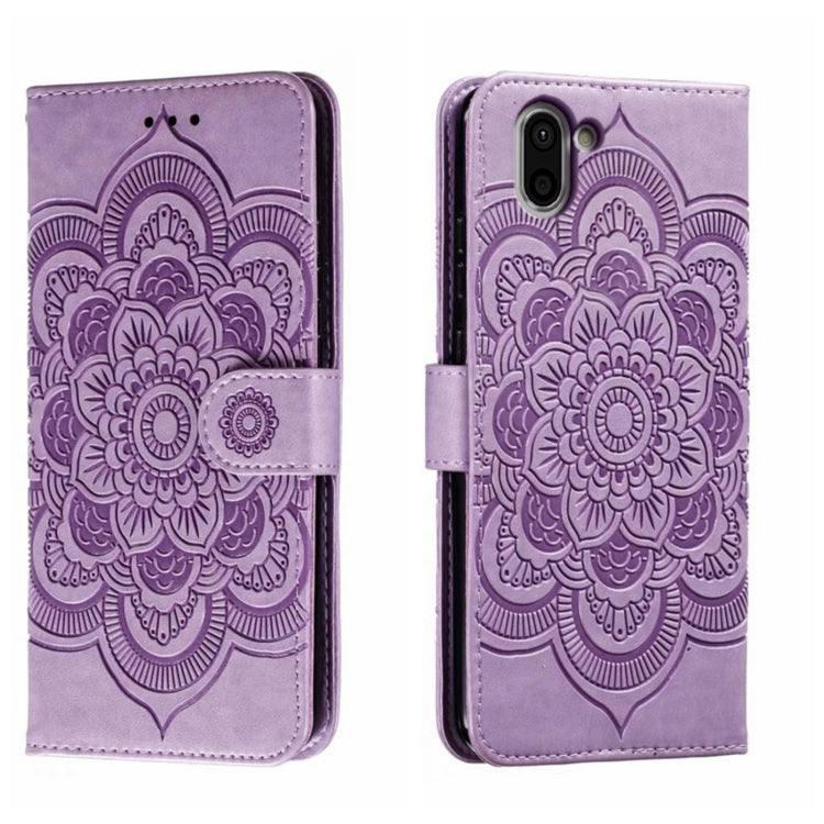 Funda de Cuero para Sharp Aquos Sense3 con Patrón En Relieve Sun Mandala (Púrpura)