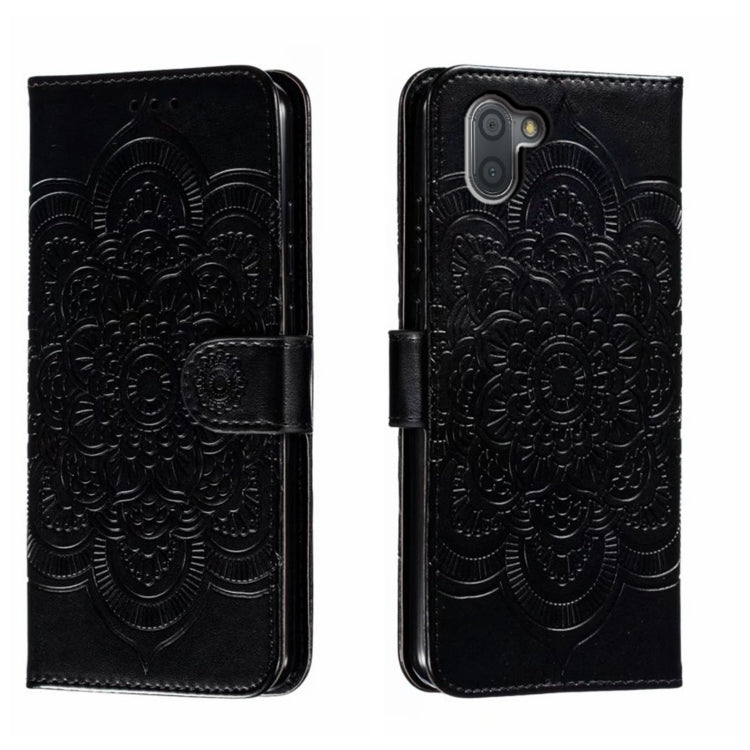 Funda de Cuero para Sharp Aquos Sense3 con Patrón en Relieve Sun Mandala (Negro)