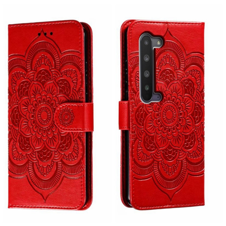 Funda de Cuero para Sharp Aquos R3 con Patrón en Relieve Sun Mandala (Rojo)
