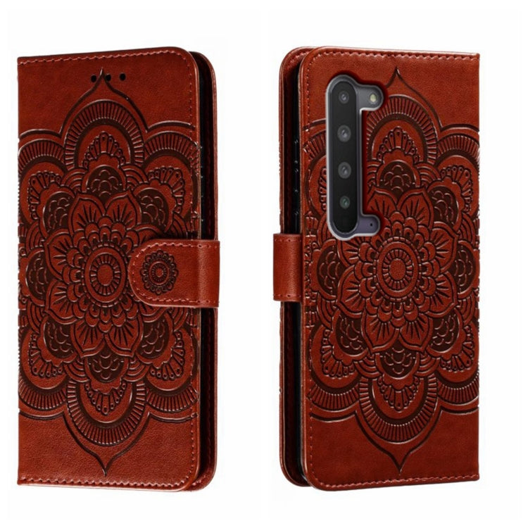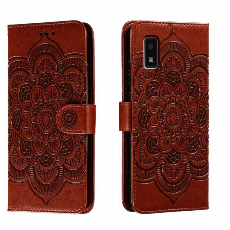 Funda de Cuero para Sharp Aquos R5G con Patrón En Relieve Sun Mandala (Marrón)