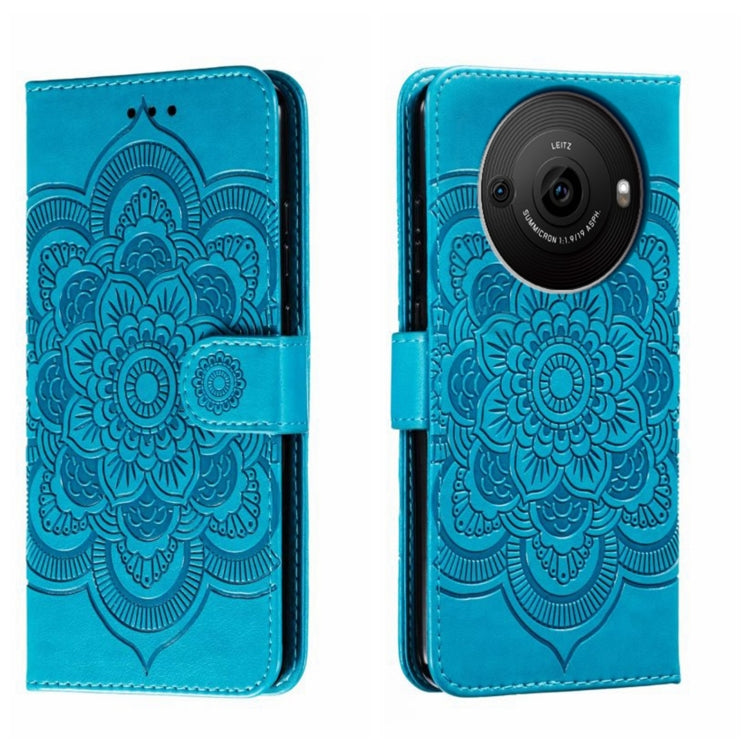 Funda de Cuero Sharp Aquos R8 Pro con Patrón en Relieve Sun Mandala (Azul)