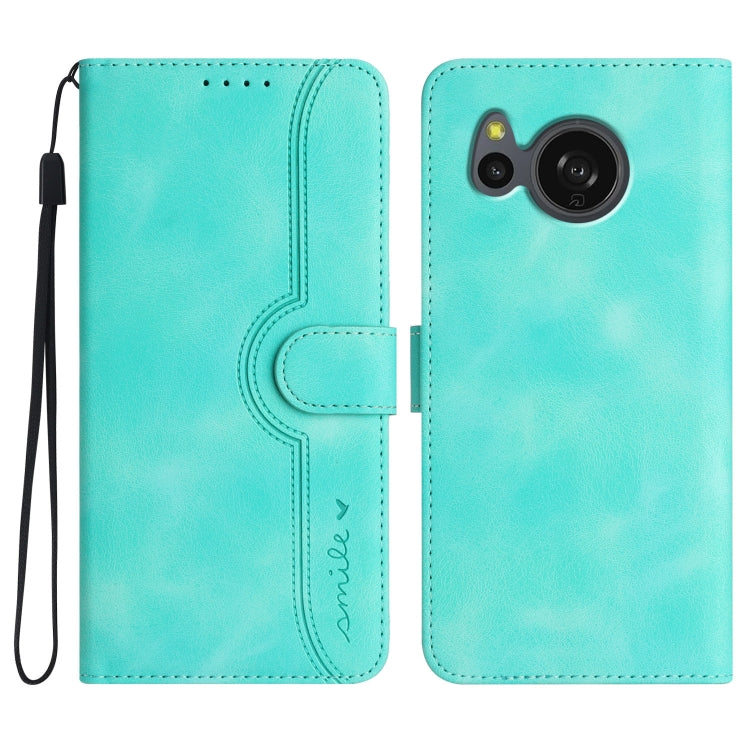 Funda de Cuero para Sharp Aquos Sense7 Sh-53C Shg10 con Patrón de Corazón (Azul Claro)