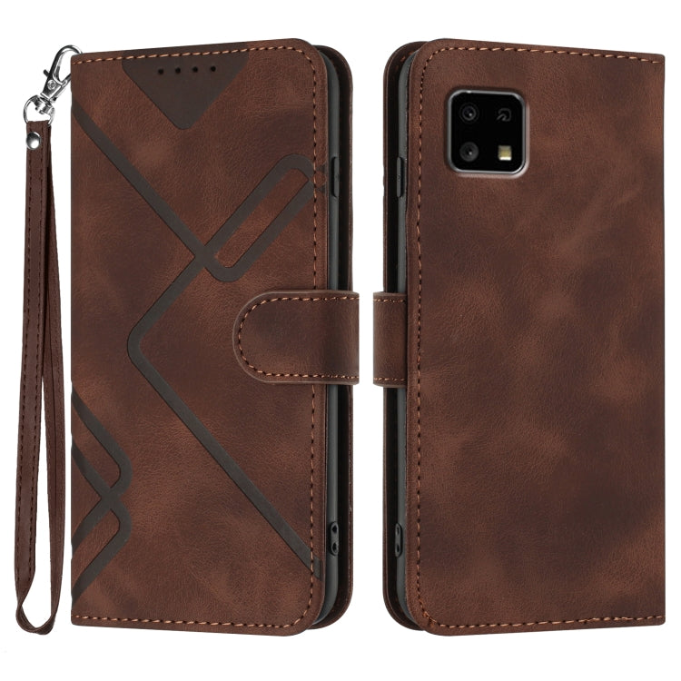 Funda de Cuero para Sharp Aquos Sense 6 / Sense6S con Patrón de Línea y Piel (Café)