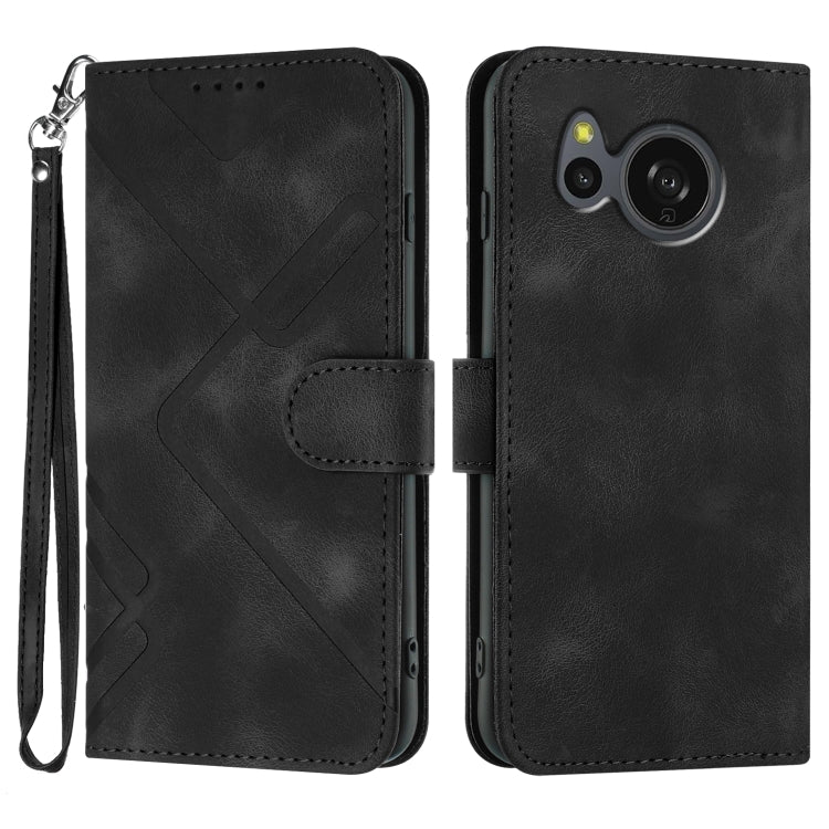 Funda de Cuero para Sharp Aquos Sense8 / Shc11 / Sh-54D con Patrón de Línea (Negro)