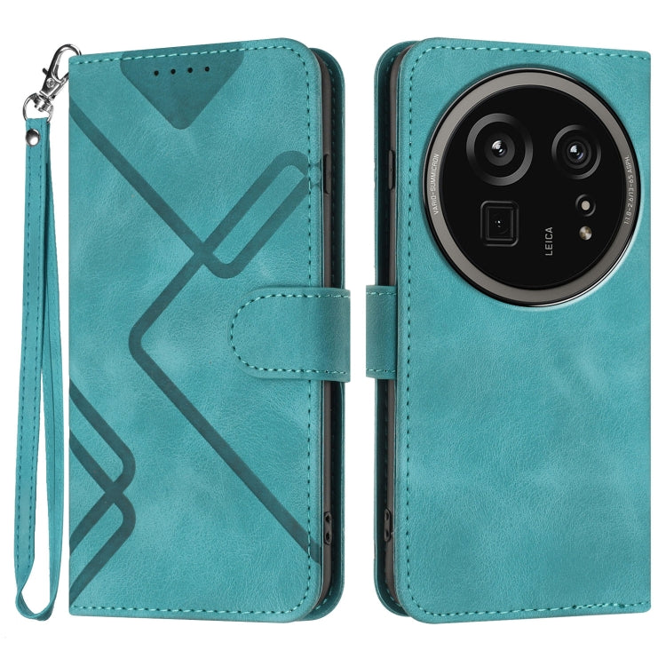 Funda de Cuero para Sharp Aquos R9 Pro con Diseño de Líneas y Tacto Suave (Azul Claro)