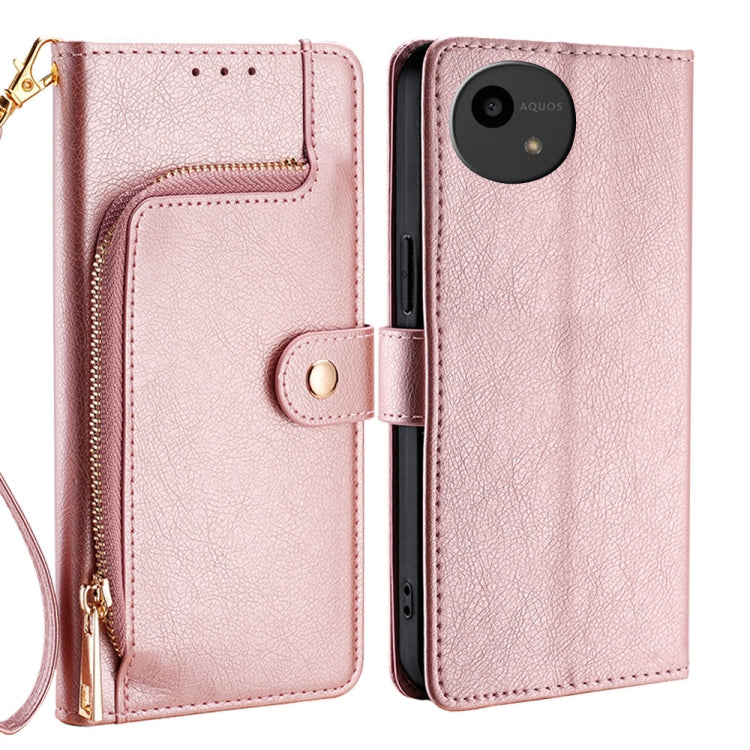 Funda de Cuero con Cremallera para Teléfono Sharp Aquos Wish4 (Oro Rosa)