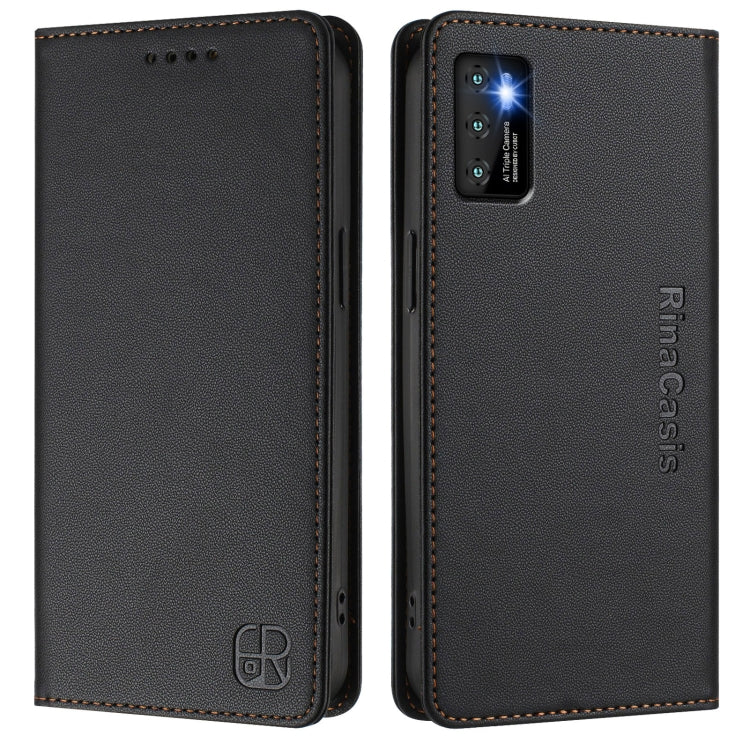 Funda de Cuero Rfid Cubot P50 Rc01 con Succión Magnética y Doble Pliegue (Negra)