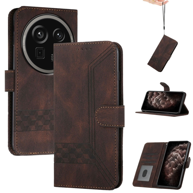 Funda de Cuero con Tapa y Tacto de Piel Cúbica para Sharp Aquos R9 Pro (Marrón)