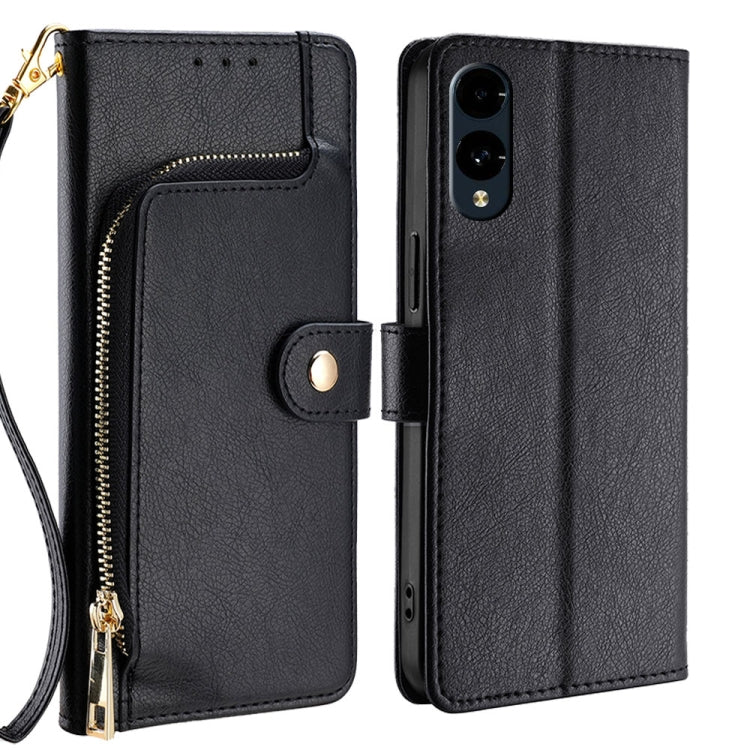 Funda de Cuero con Cremallera para Teléfono Fujitsu Arrows We2 (Negra)